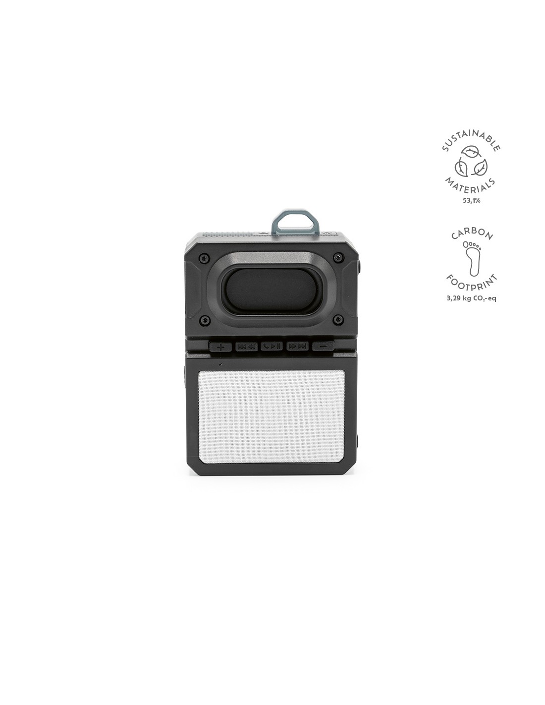 Ecco Soundo, lo speaker straordinario da 3W con subwoofer integrato e batteria da 800mAh. Realizzato al 100% in plastica ABS riciclata, Soundo offre 6 ore di autonomia e una qualità audio sorprendente per la sua compattezza. Ricarica in 2 ore. La cinghia consente di agganciarlo facilmente a borse, mentre la griglia rimovibile permette personalizzazioni a colori complete. Connessione fluida tra dispositivi tramite sistema TWC. Confezionato singolarmente in scatole kraft per un tocco pulito ed ecologico.