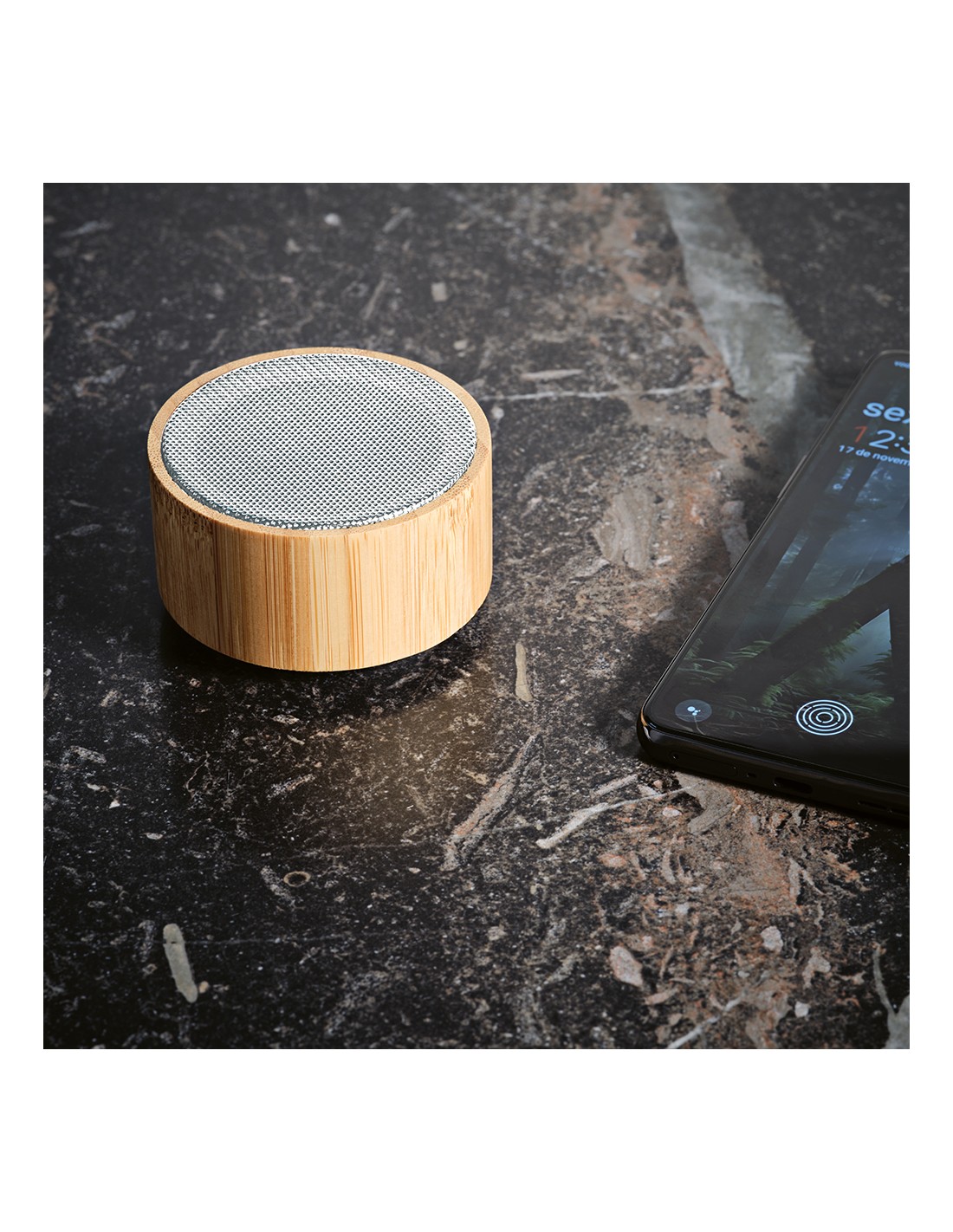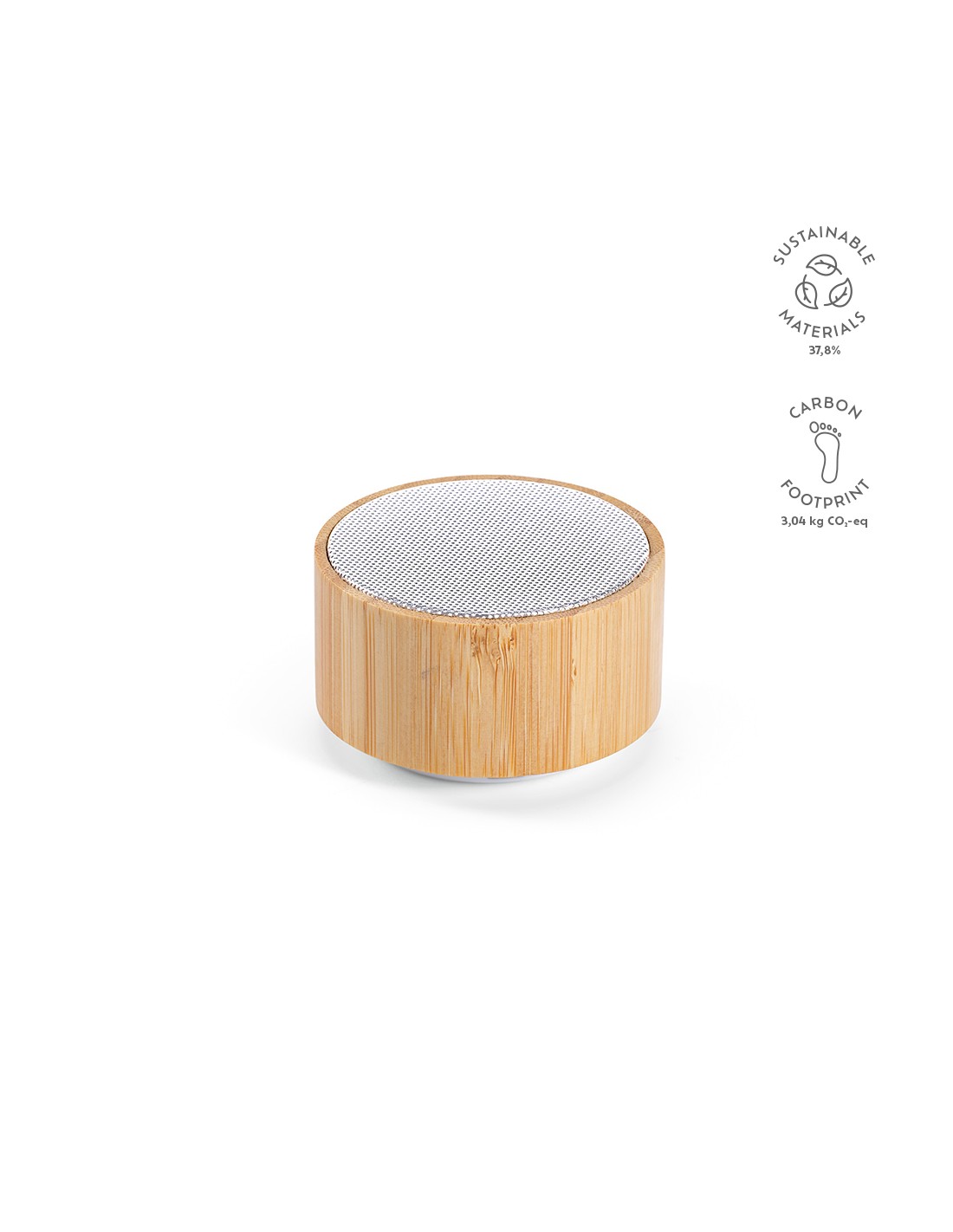 Speaker wireless da 3W realizzato con involucro in bambù 100% FSC® e ABS riciclato certificato RCS (Recycled Claim Standard). Contenuto totale riciclato: 16% in base al peso totale dell'articolo. La certificazione RCS garantisce una filiera completamente certificata dei materiali riciclati. Ha...