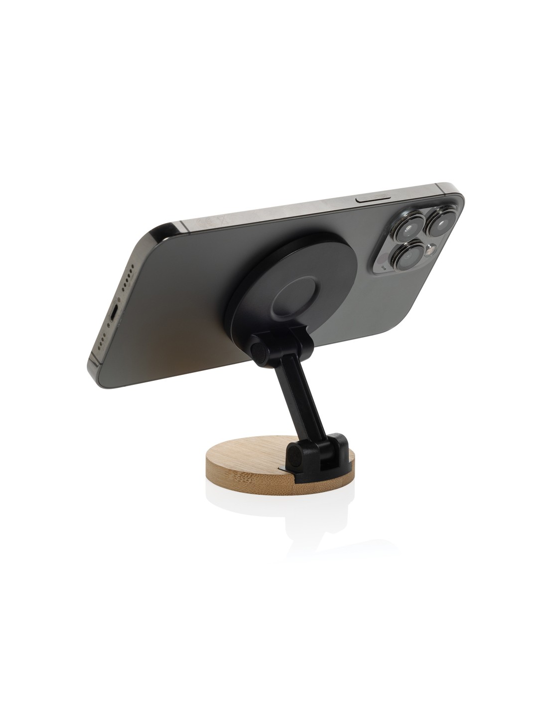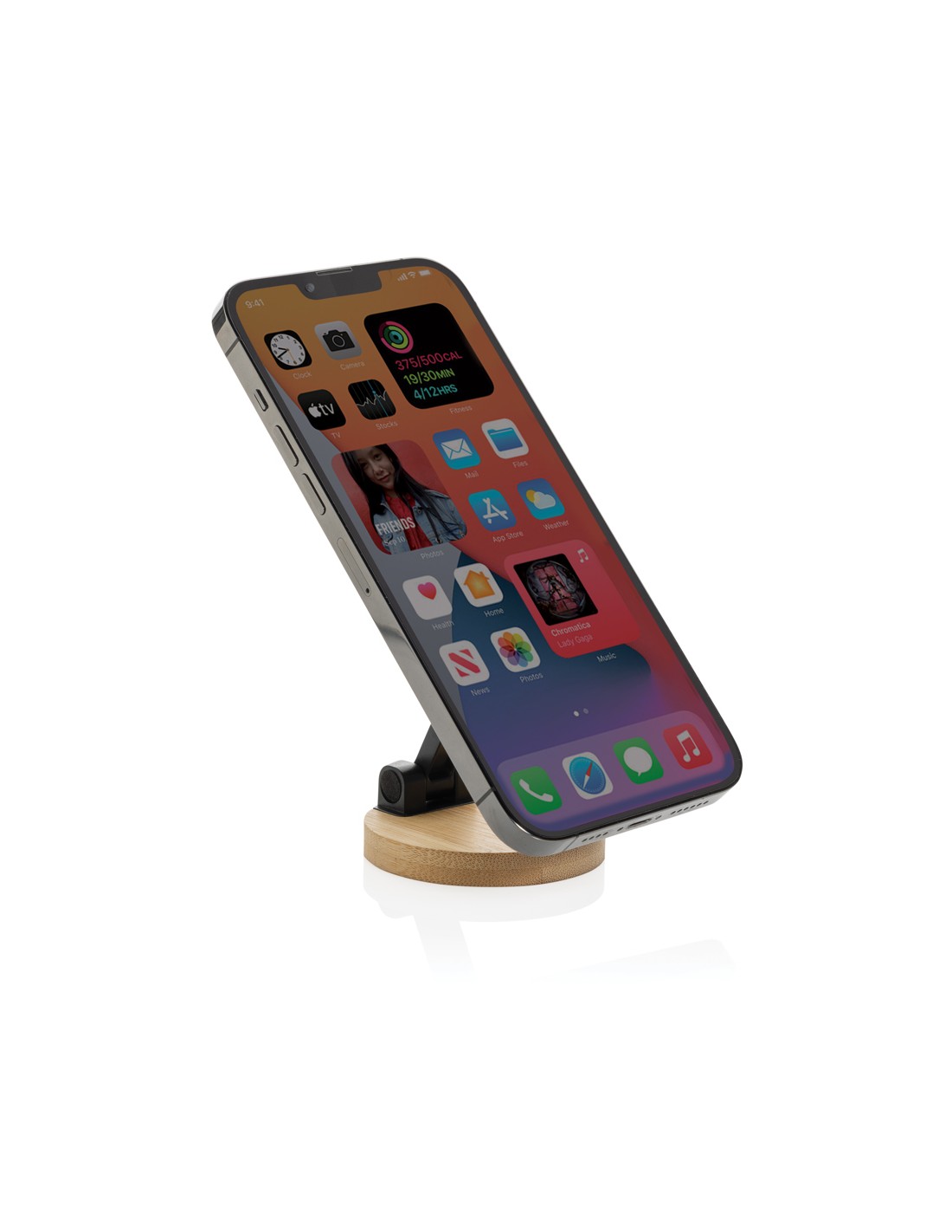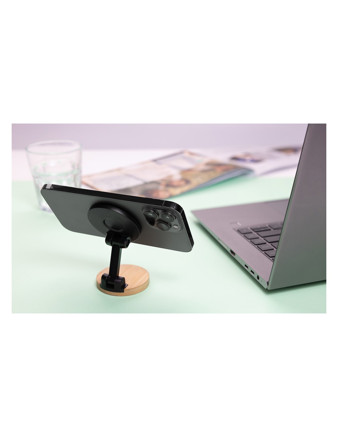 Supporto magnetico per telefono, pieghevole e compatto con magnete extra forte. Compatibile con tutti i telefoni dotati di magnete integrato (iPhone 12 e successivi), per Android compatibile con i telefoni che supportano QI2, altri telefoni necessitano di una custodia magnetica. Il supporto è realizzato con ABS riciclato certificato RCS (Recycled Claim Standard) e bambù naturale. Contenuto riciclato totale: 30% in base al peso totale dell'articolo. La certificazione RCS garantisce una catena di approvvigionamento dei materiali riciclati completamente certificata.