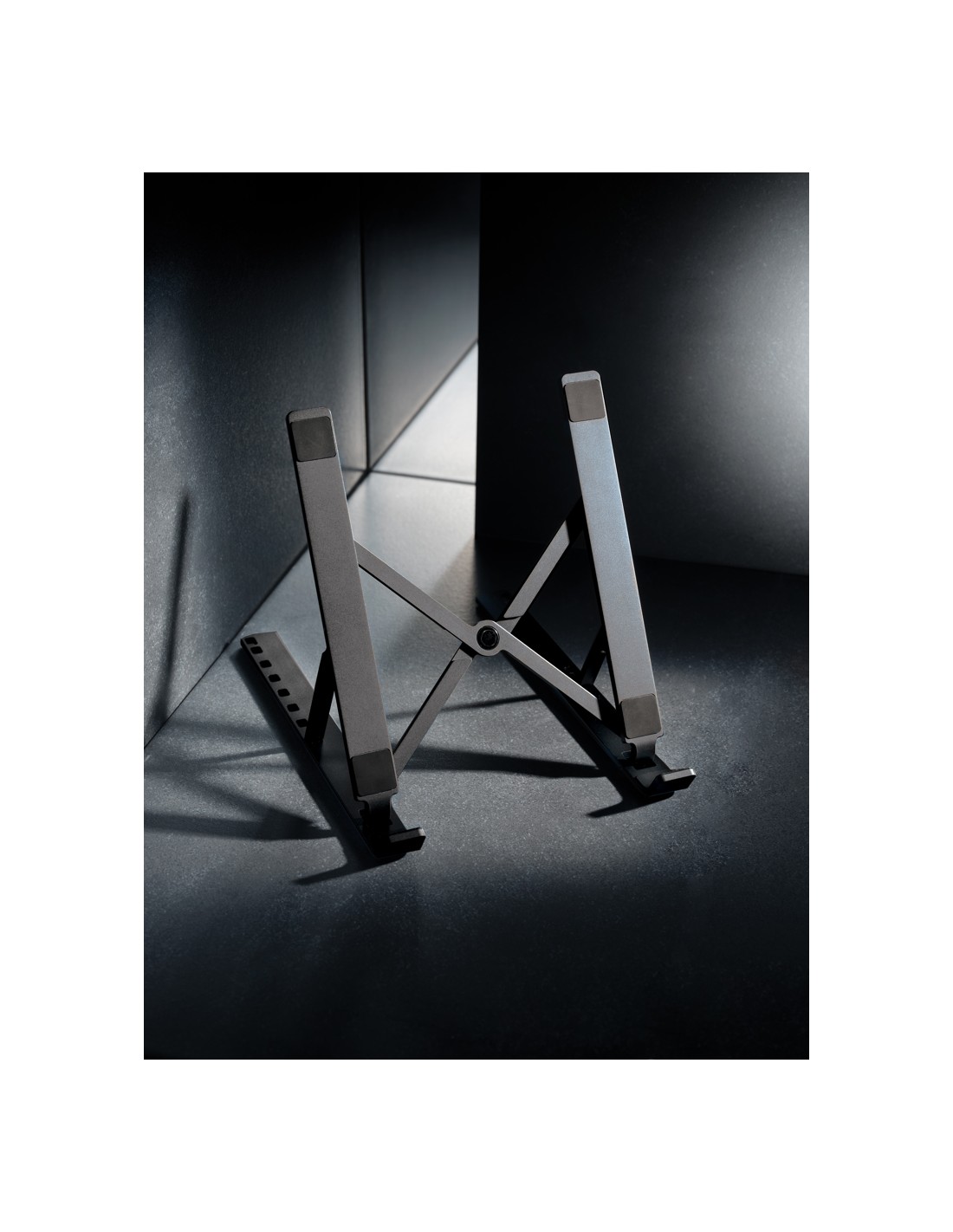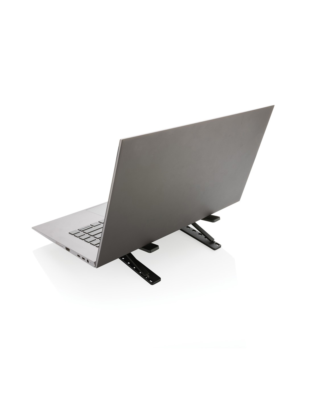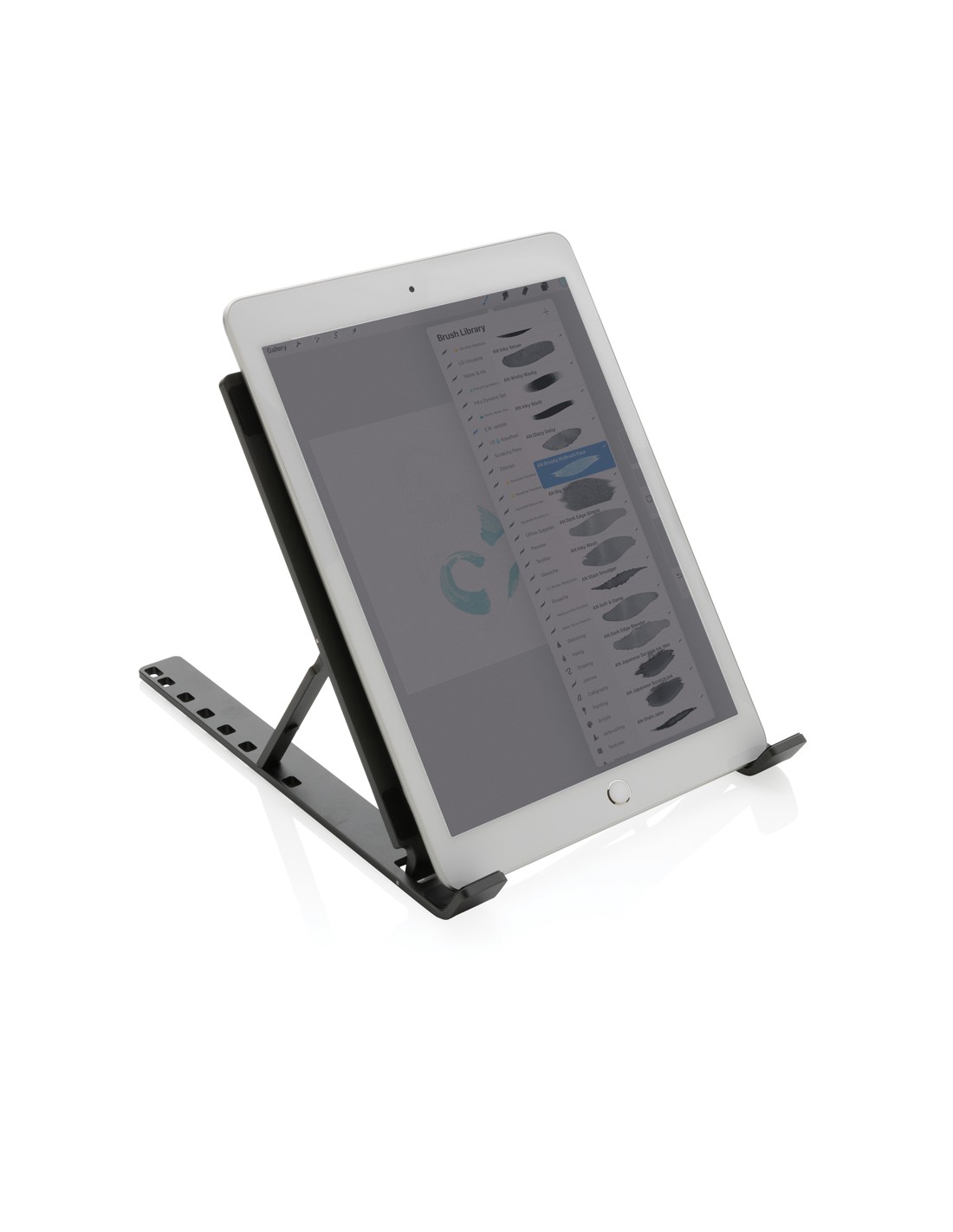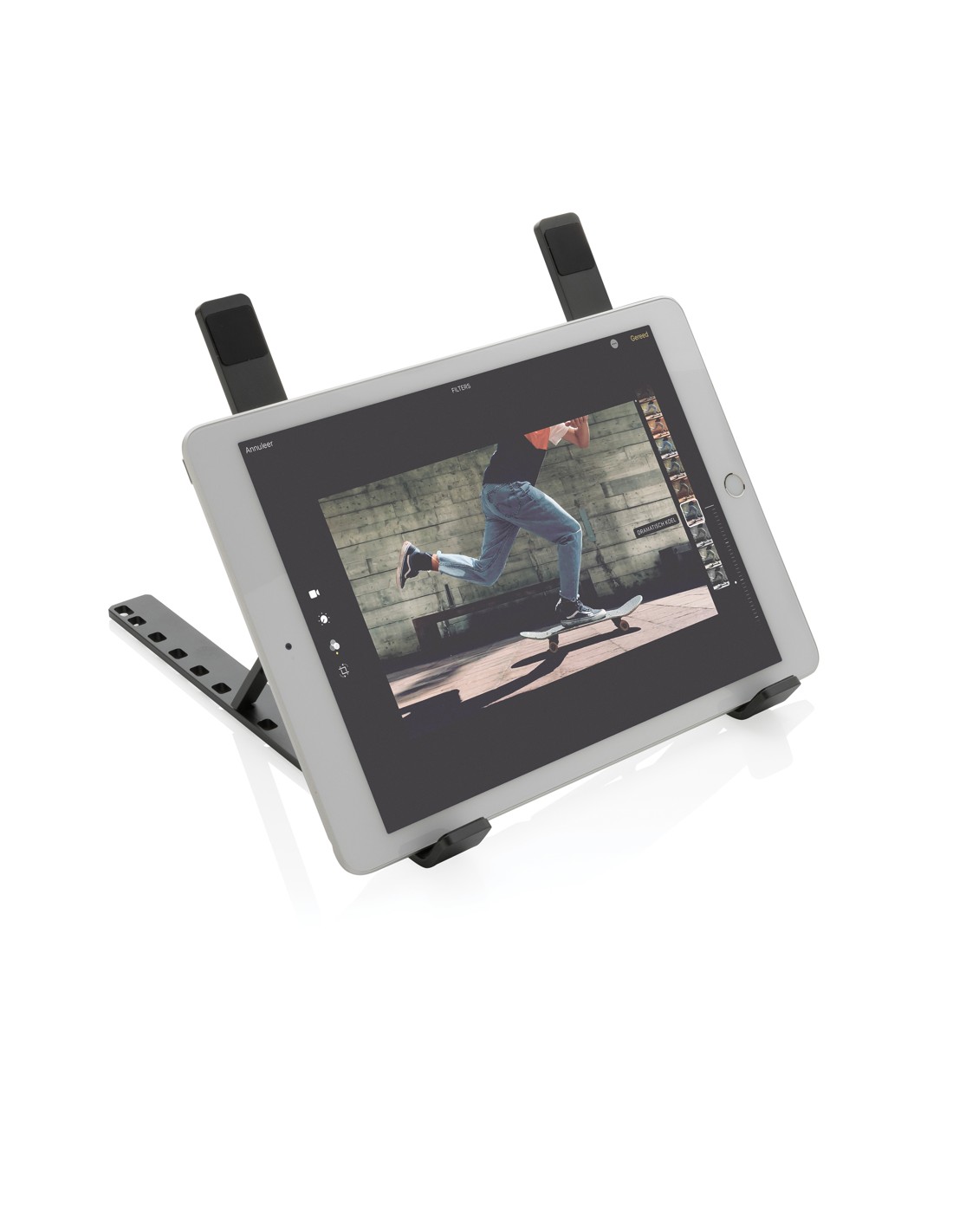 Supporto per telefono pieghevole in alluminio. L'altezza e l'angolo di visualizzazione del supporto possono essere regolati, rendendolo l'accessorio perfetto per le videoconferenze, le trasmissioni, le dirette streaming o semplicemente per guardare un film. La base dispone di un rivestimento...