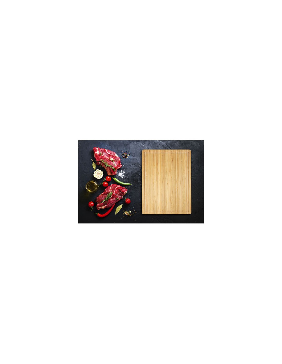 Tagliere in bambù ottenuto e prodotto in base a standard sostenibili. Il tagliere può essere utilizzato anche per servire tapas.