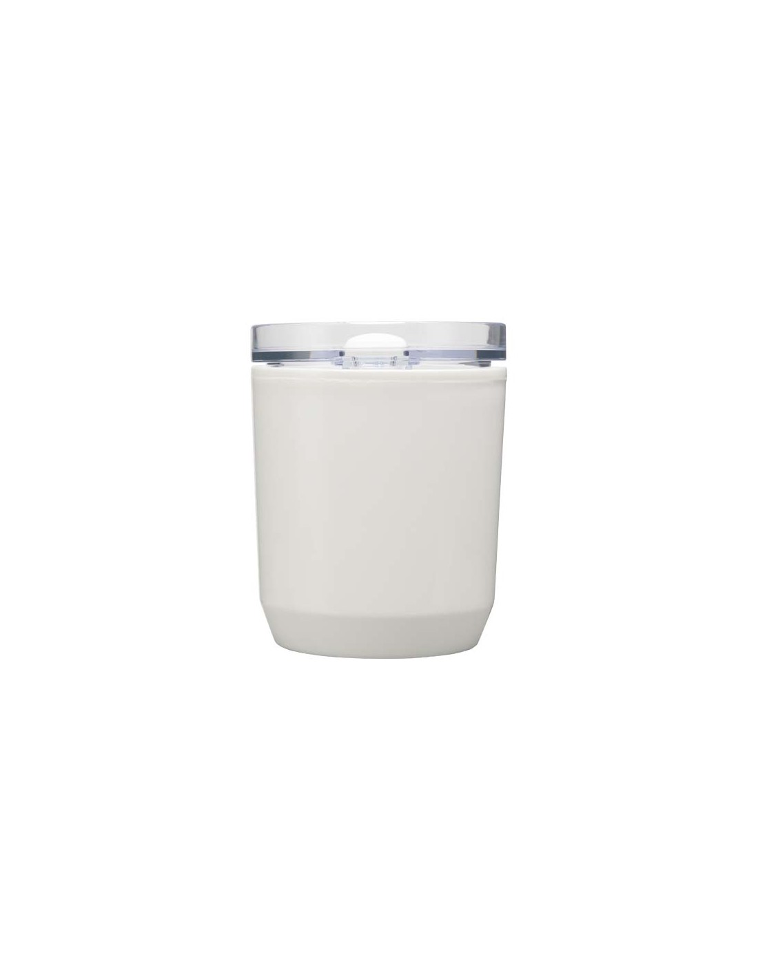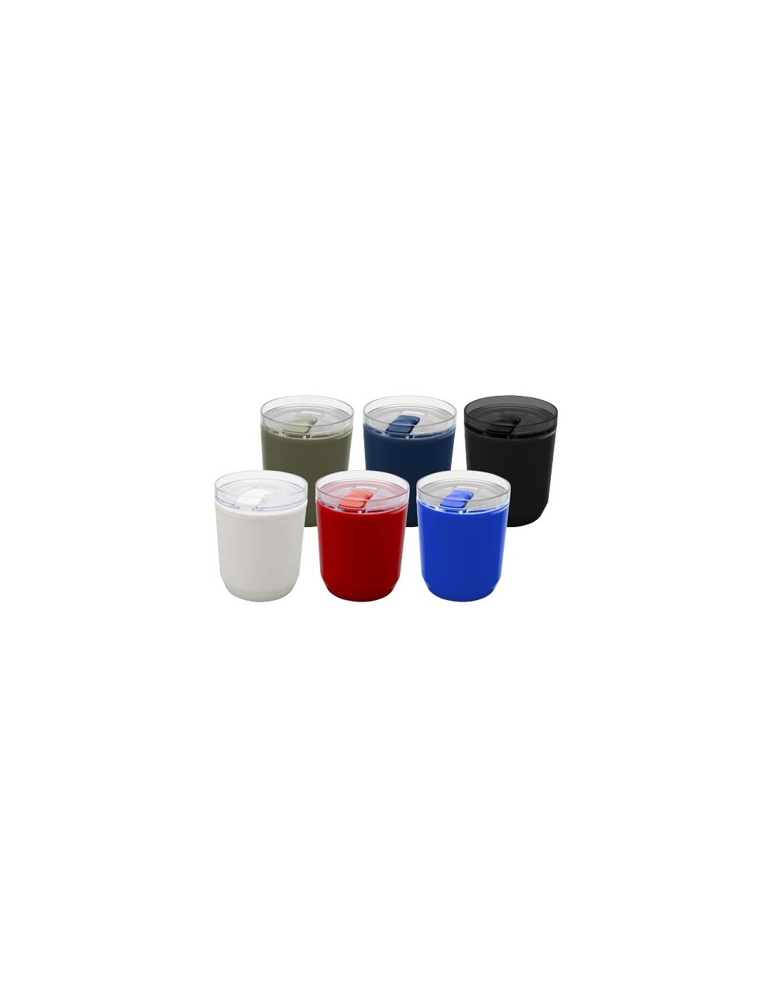 Bicchiere dal design semplice compatibile con la maggior parte delle macchine da caffè e dei portabicchieri per auto. Presenta una struttura a doppia parete con esterno in plastica PP riciclata e interno in plastica PP. Il coperchio scorrevole è realizzato in plastica PP e AS. Capacità: 180 ml.