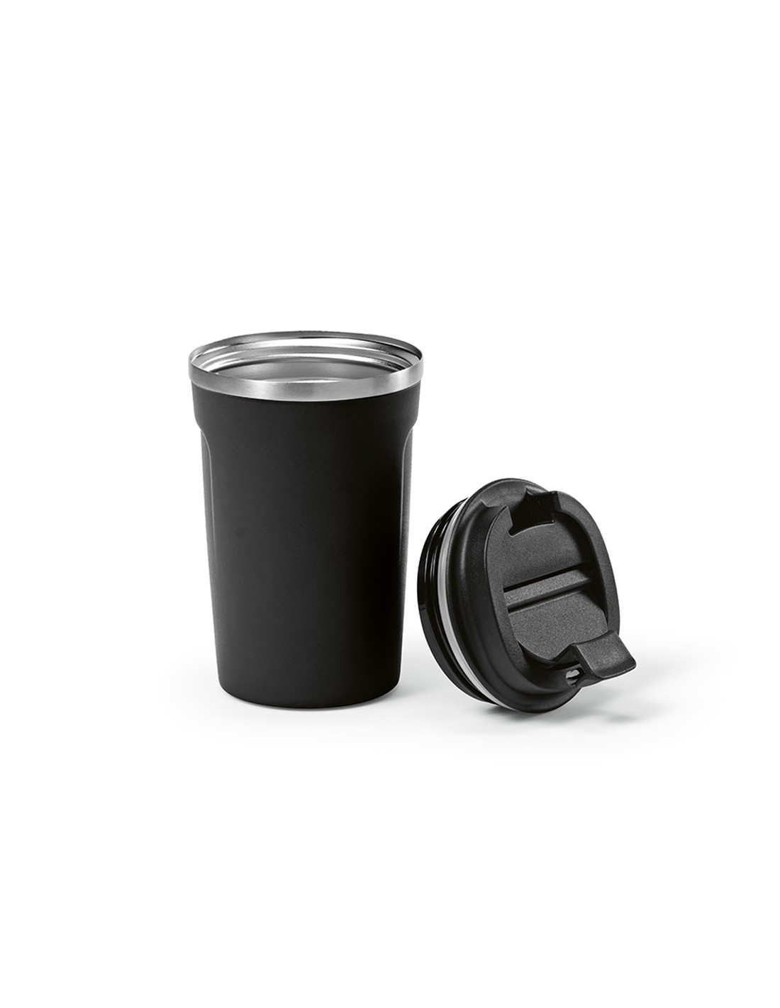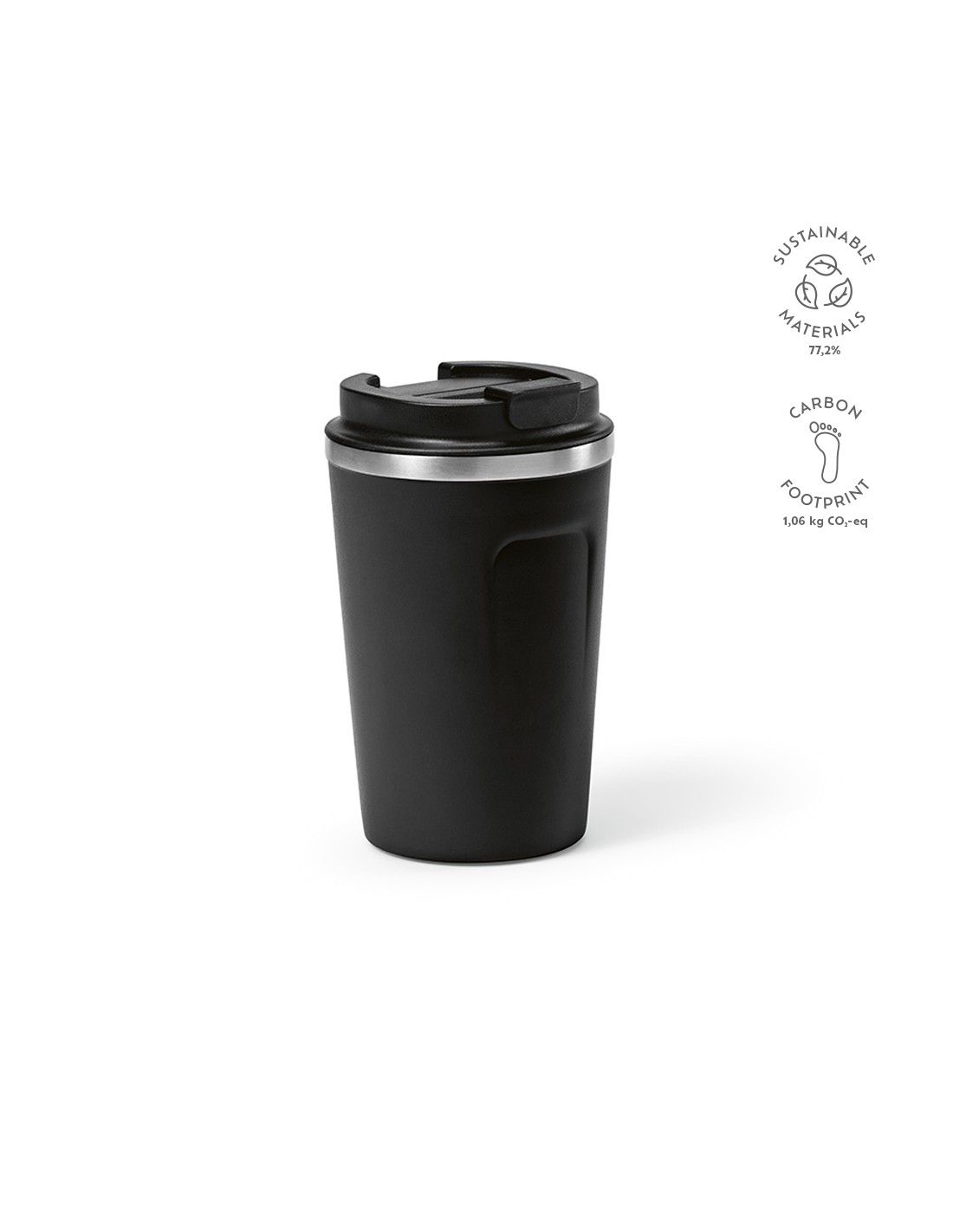 Bicchiere termico a doppia parete con coperchio ermetico twist e stampa full color su tutto il prodotto. Realizzato in materiale riciclato al 65% (tazza riciclata e interno nero), con un coperchio in plastica standard. Il bicchiere è completamente riciclabile, lavabile in lavastoviglie e adatto...