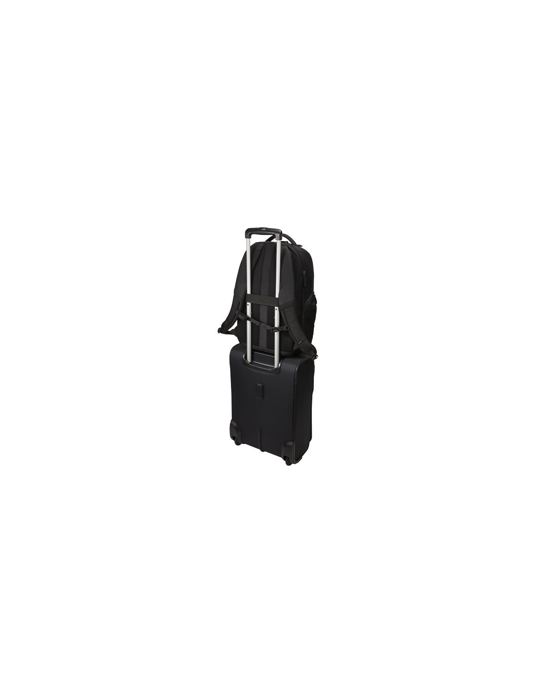 Ampio scomparto principale con cerniera, custodia imbottita per portatile da 17,3" e tablet da 10,1", tasca in rete con cerniera per cavi e accessori. Pannello divisorio anteriore per inserire piccoli dispositivi elettronici, cavi, accessori, biglietti da visita e chiavi. Tasche laterali espandibili per bottiglia d'acqua o basetta alimentatore, tracolle imbottite, pannello posteriore in rete traspirante trapuntata, impugnatura morbida e barra telescopica per trolley. Garanzia Case Logic: 25 anni.
