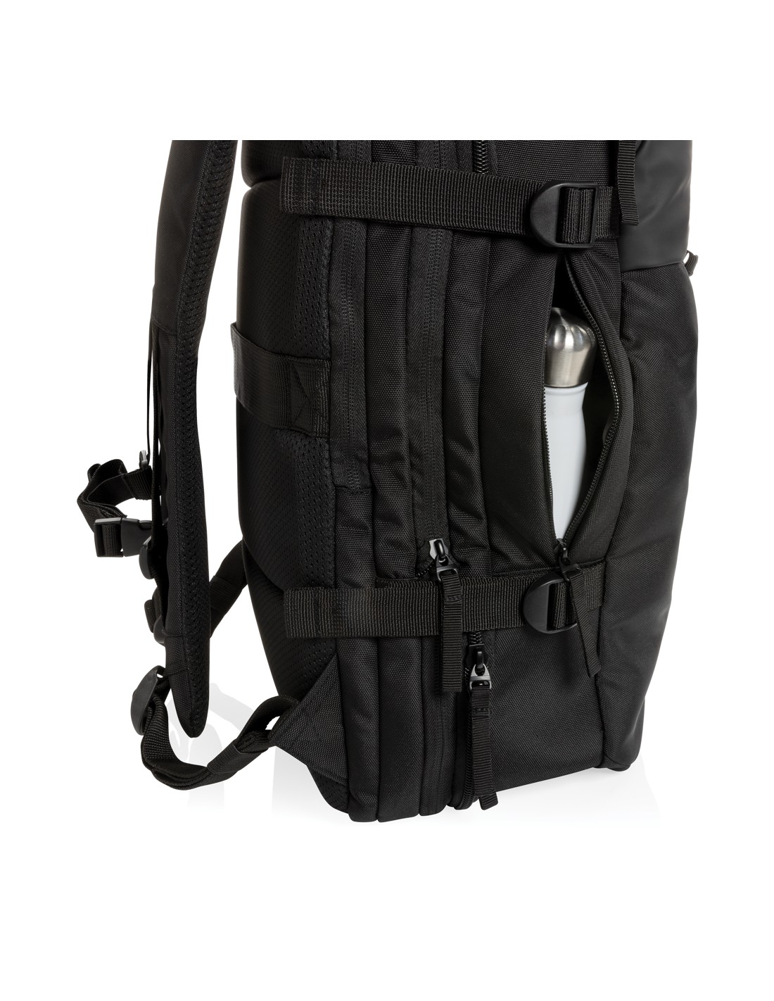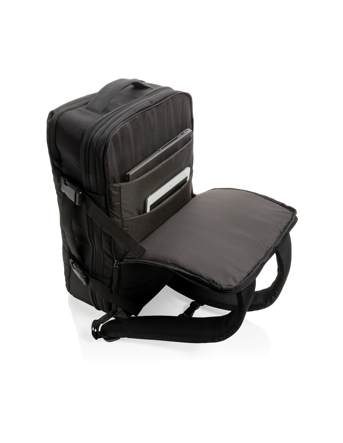Lo zaino per portatile da viaggio Trip Aware™ in materiale riciclato è compatto e leggero e progettato per gli spostamenti e l'uso quotidiano. Realizzato in resistente poliestere twill 290D con un morbido pannello posteriore tessuto a maglia e foderato in PET riciclato 210D/PU, unisce la...