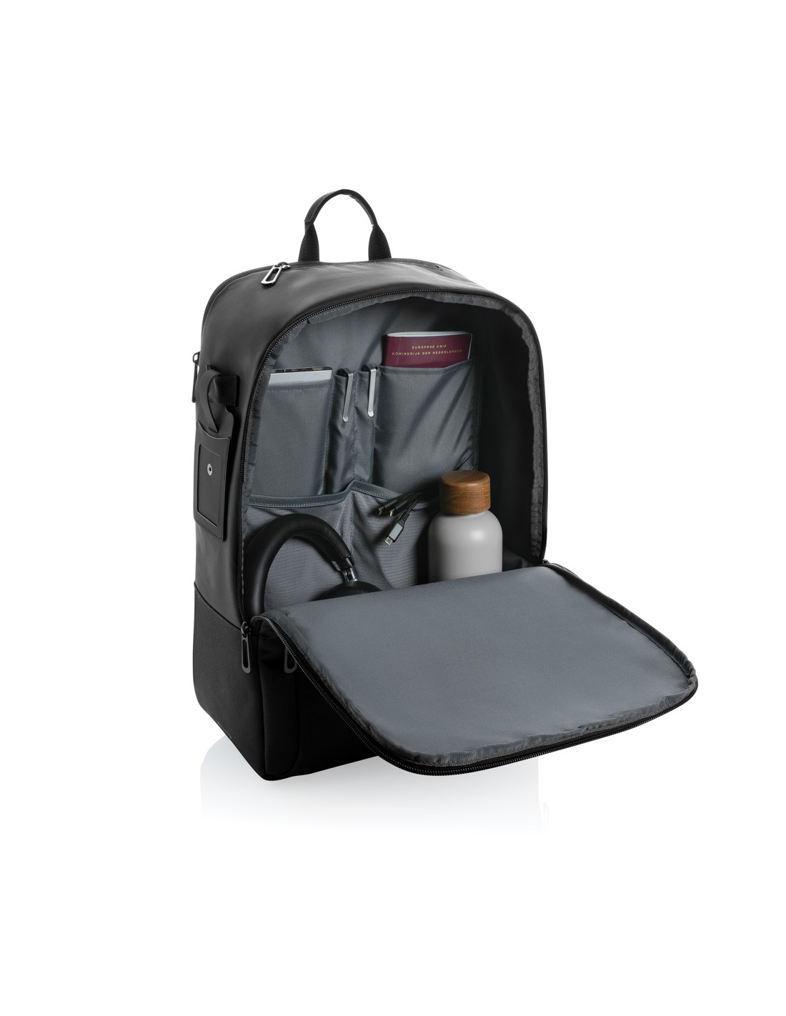 Un elegante zaino per portatili da 17 con porta USB e cavo. Dotato di protezione RFID nella tasca laterale e di tasche aggiuntive con cerniera. Le maniglie superiori e frontali, insieme agli spallacci imbottiti lo rendo facile da trasportare. Sono possibili piccole variazioni di colore nel...