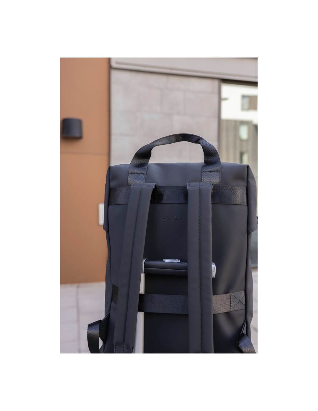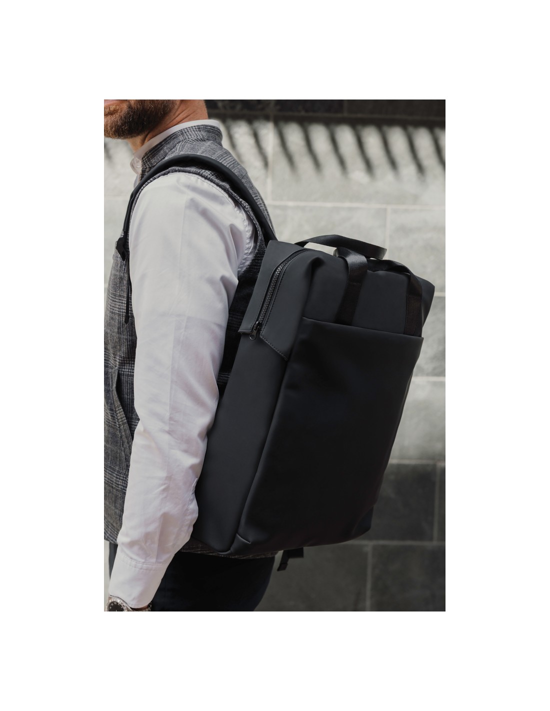 Una borsa facile da maneggiare dal design elegante. Può essere utilizzata come borsa a tracolla o zaino. E' dotata di un'ampia apertura con cerniera per riporre comodamente il laptop e altri oggetti di valore. Una cinghia sul retro consente di fissarla a un trolley per un trasporto agevole. Include anche una grande tasca frontale, una tasca interna e un pratico portabottiglie. Certificato RCS (Recycled Claim Standard), la certificazione RCS garantisce che l'intera catena di approvvigionamento dei materiali riciclati è certificata. Il contenuto totale riciclato si basa sul peso complessivo del prodotto. Questo prodotto contiene il 19% di poliestere riciclato certificato RCS.