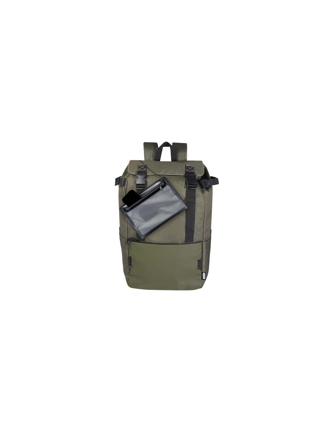 Zaino da lavoro realizzato con bottiglie riciclate con cavo 3 in 1 in plastica PET riciclata (tipo C/micro USB/iPhone). Fornito di una batteria integrata a ricarica rapida da 10.000 mAh e di un cavo di ricarica con logo luminoso. La batteria è collegata a due connettori esterni (USB e Android)....
