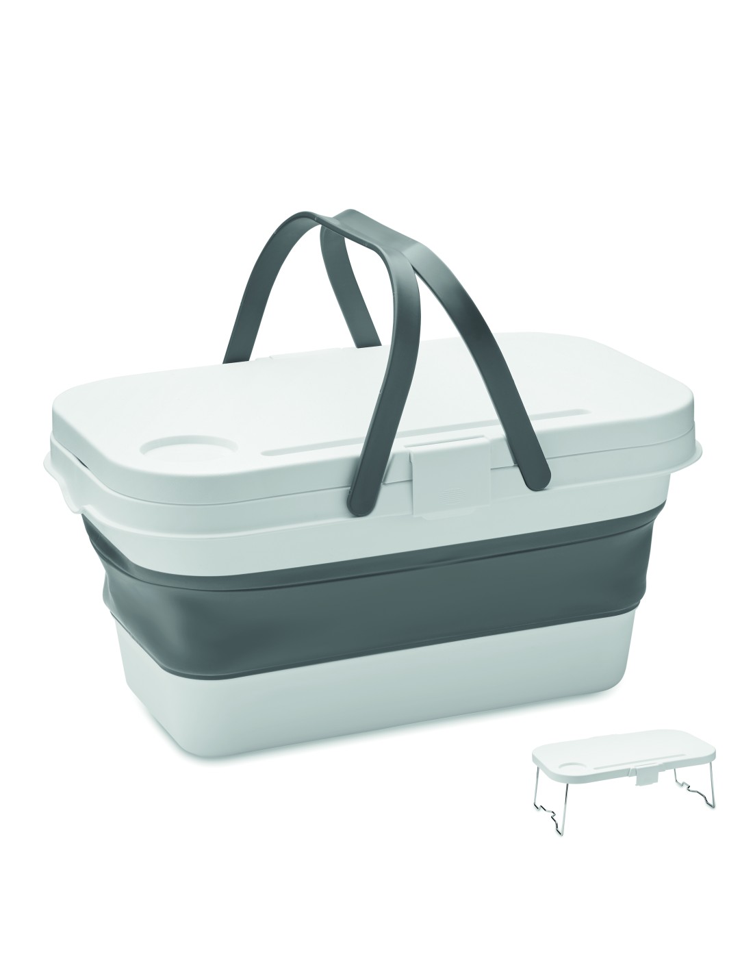 Cestino da picnic pieghevole in silicone con piano in PP. Capacità: 16 L.