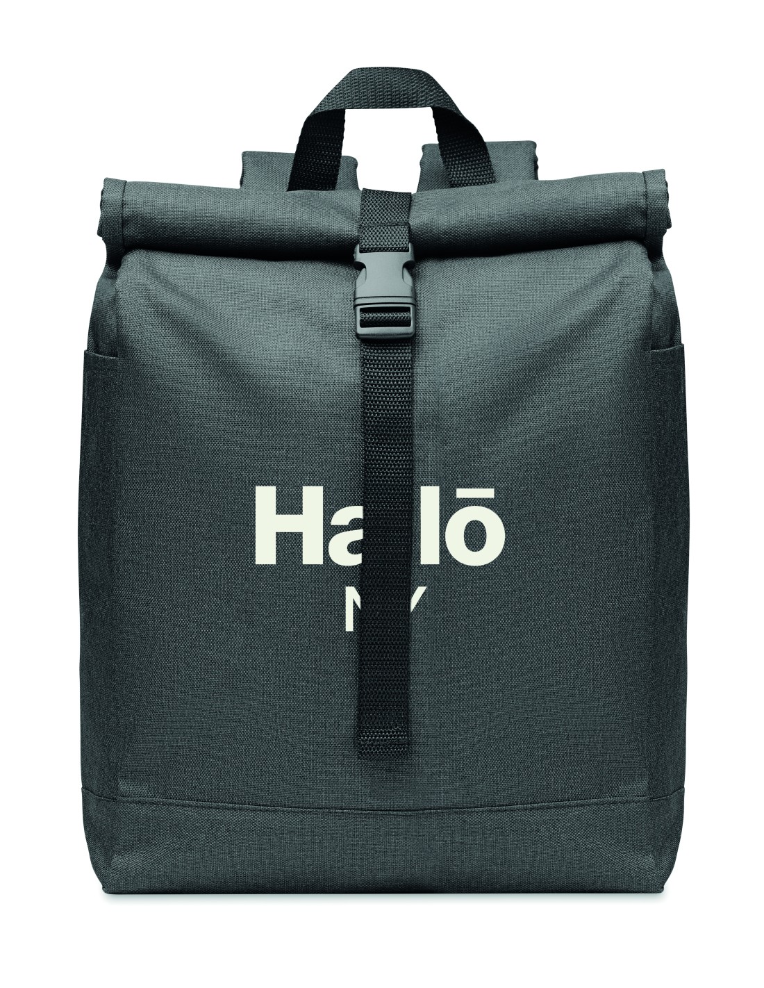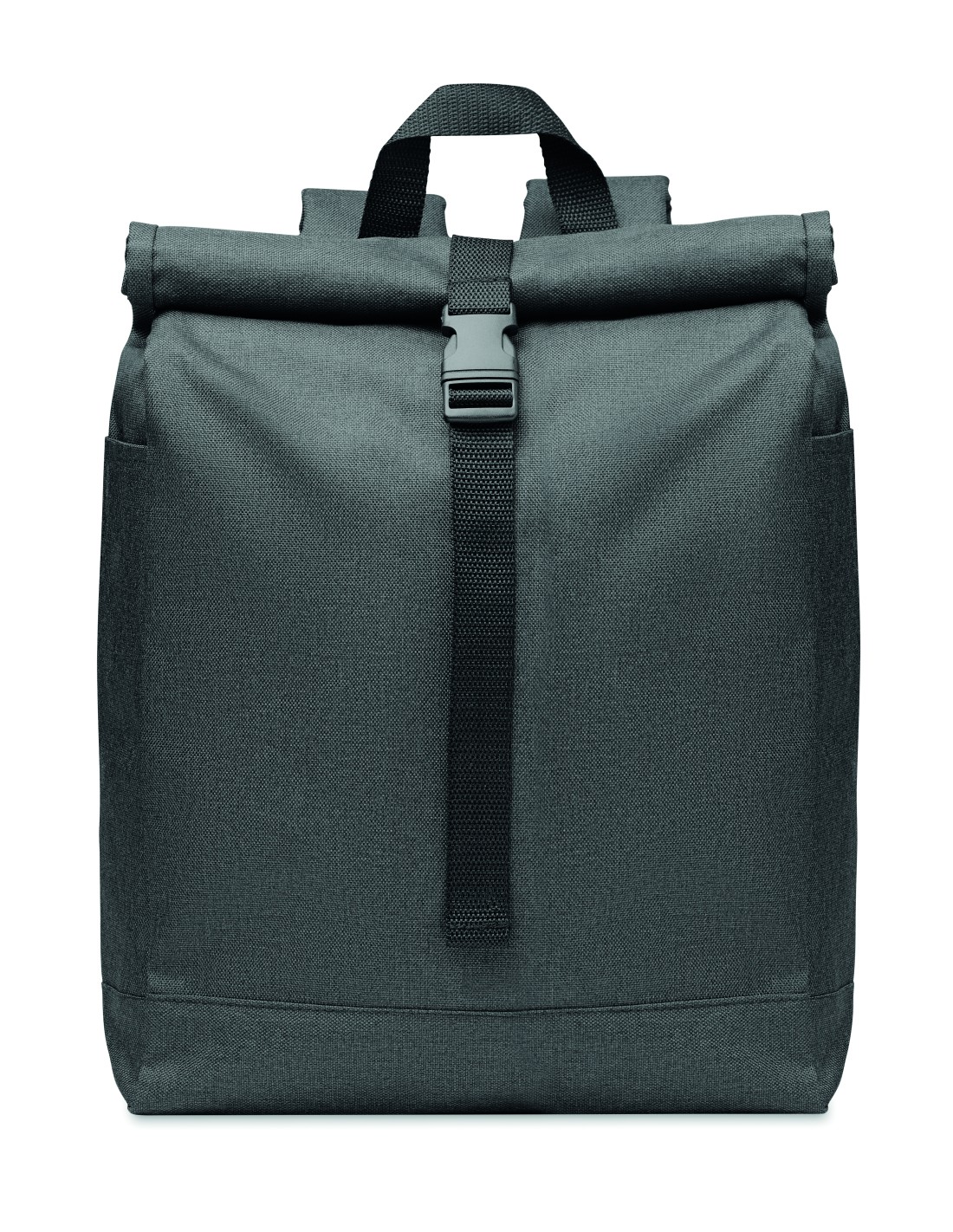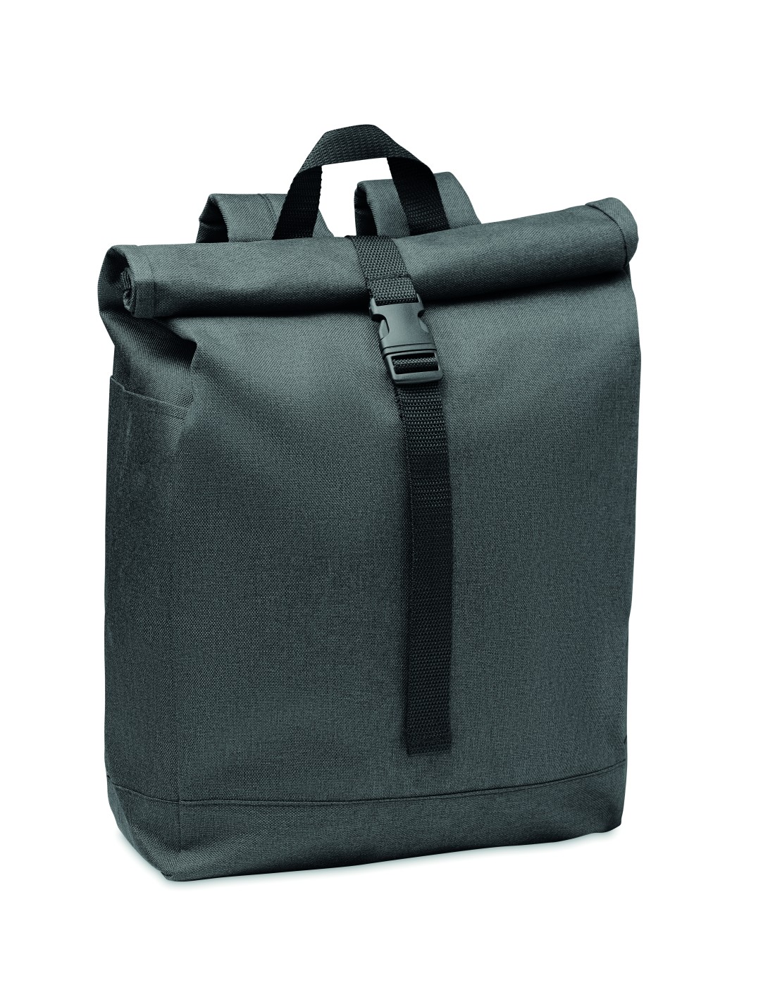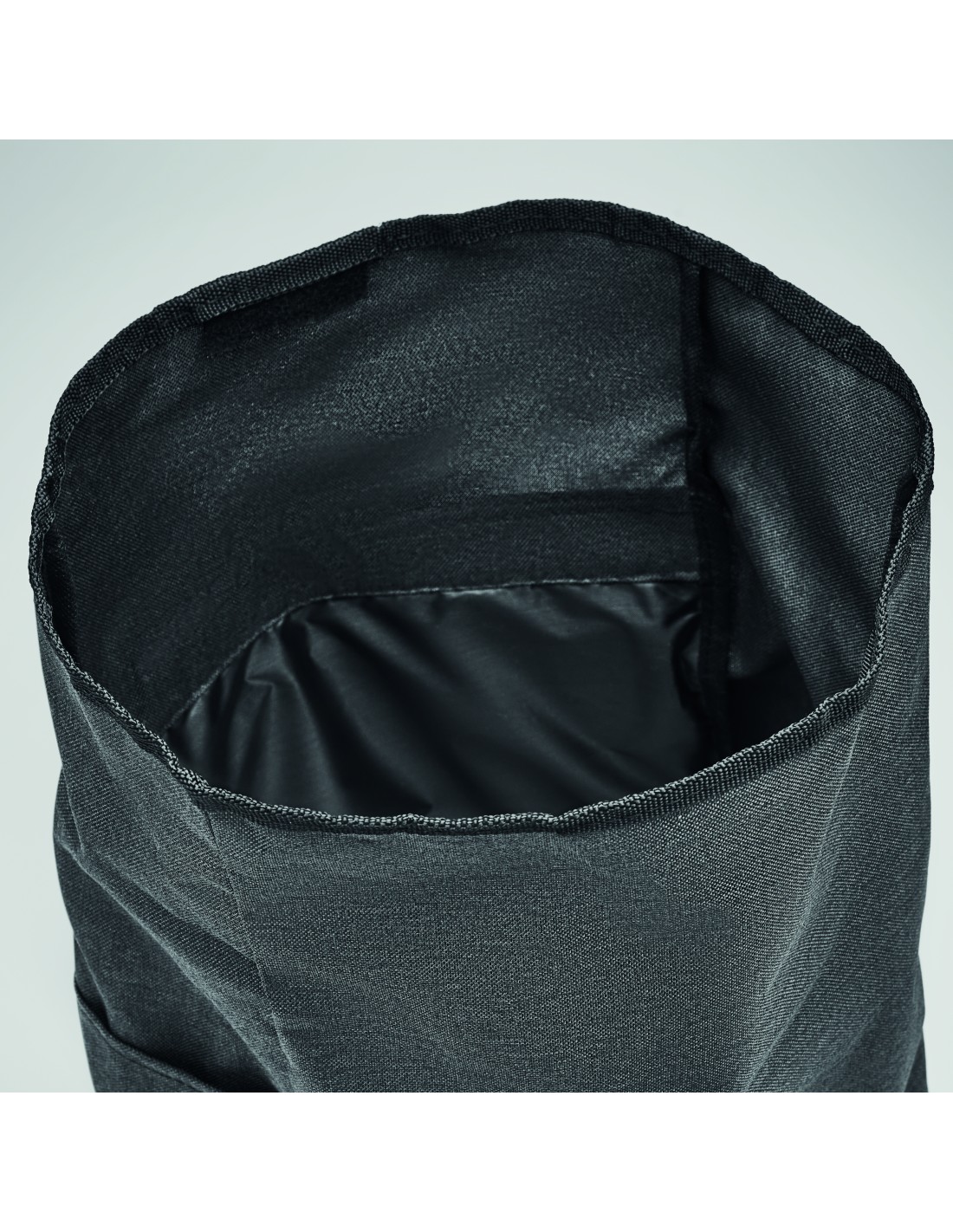 Zaino in poliestere in RPET 600D, 2 toni con chiusura superiore a rotolo.
