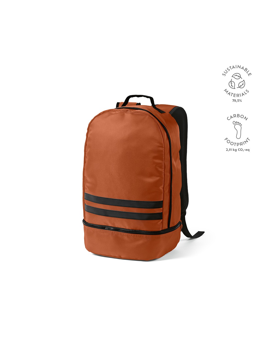 Zaino in poliestere 600D. Tasca frontale con chiusua a zip, retro imbottito in poliestere 210D.